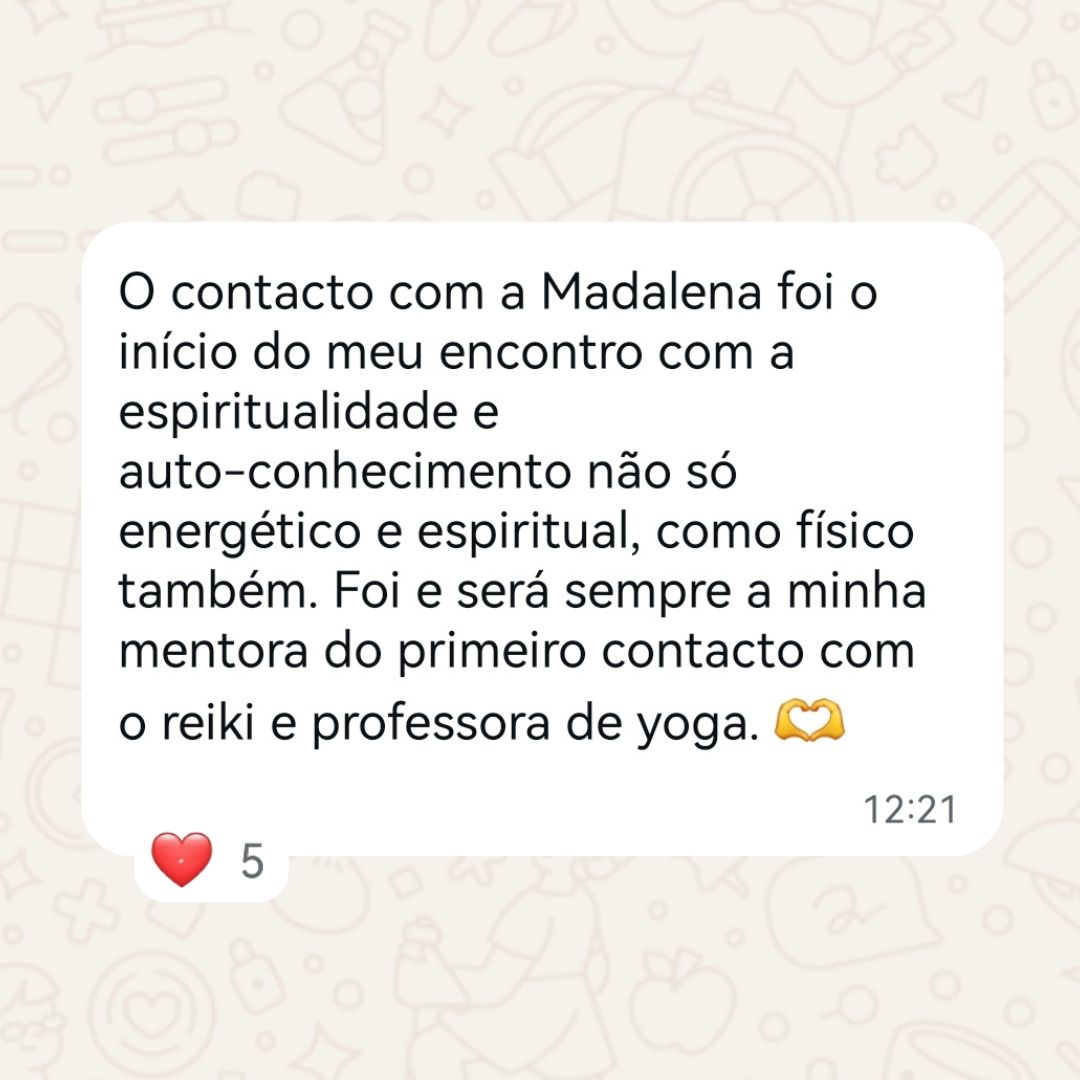 Sou a Madalena Aparício, especialista em Parapsicologia Clínica Científica, terapia energética, orientação espiritual e professora de yoga, meditação, relaxamento e spiritual dance. Tenho ajudado centenas de pessoas altamente sensíveis a encontrar o equilíbrio e a compreender melhor as suas perceções.